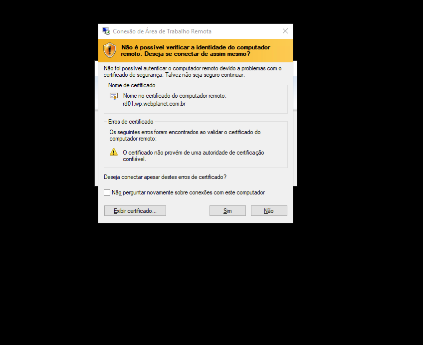 Marque a opção "Não perguntar novamente para conexões com este computador".