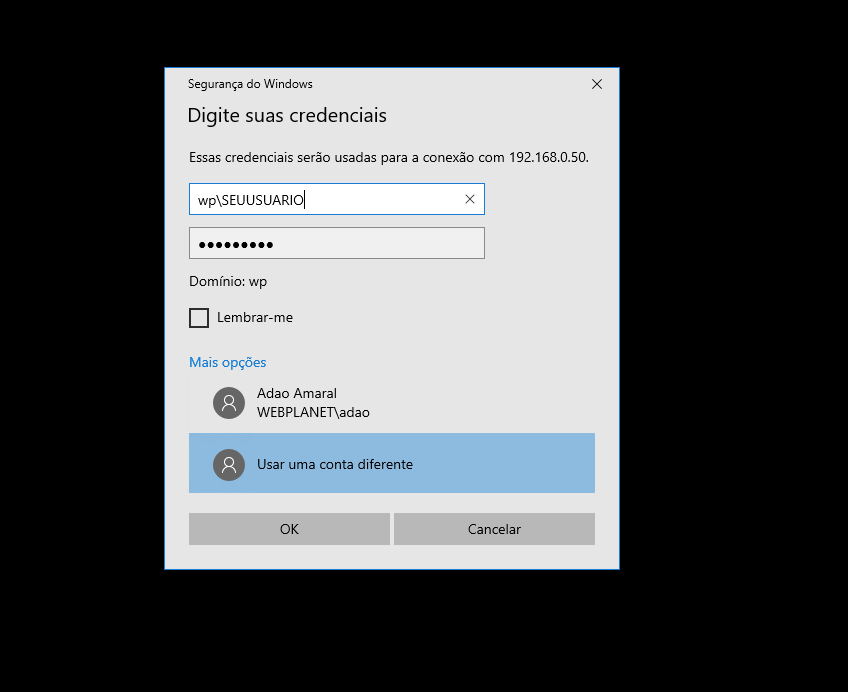 Uma nova janela será exibida solicitando suas credenciais.